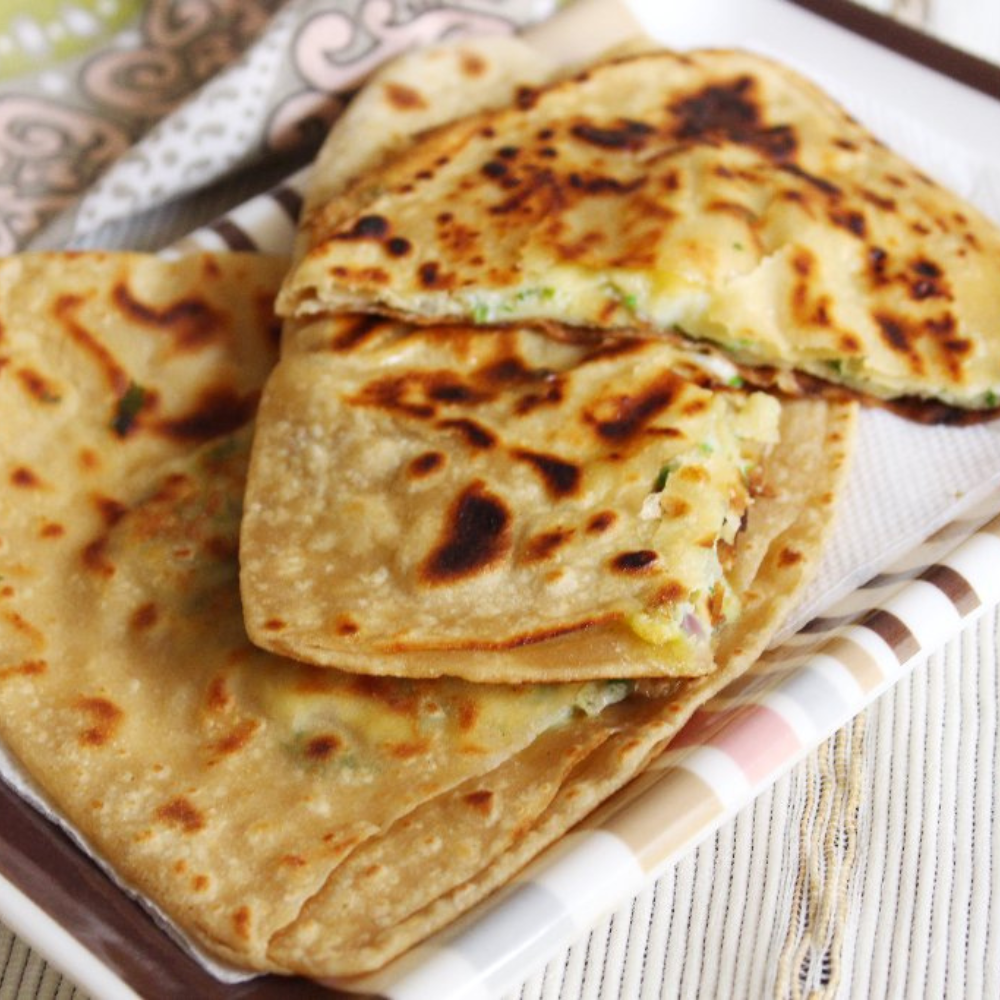 Paratha is a layered flatbread made from refined flour, griddle-cooked with ghee until crisp and golden. The egg paratha is enriched with a savory egg filling, perfect for a hearty meal or breakfast option.